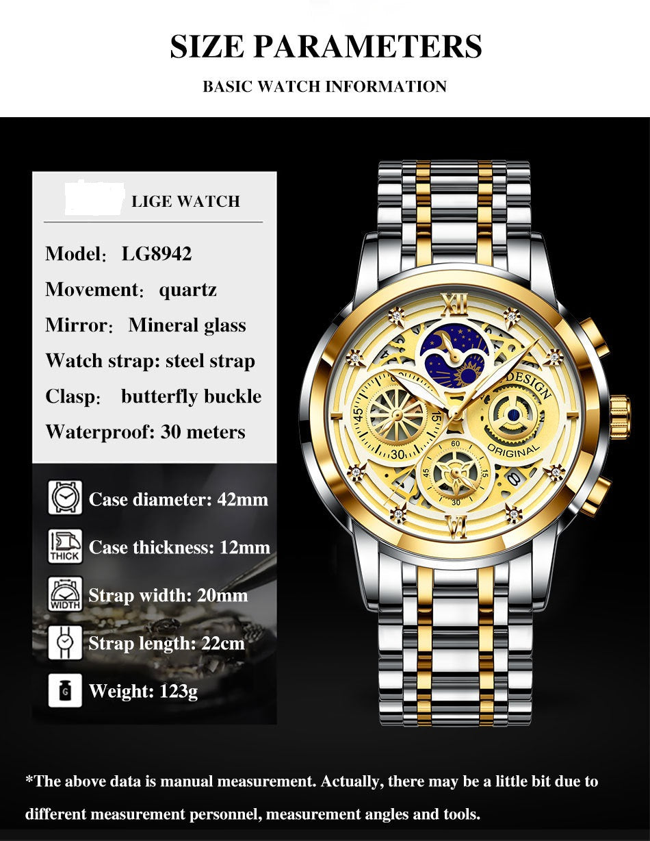 ⌚ Premium Materials and Craftsmanship: Featuring a 42mm alloy case, a 12mm thick design, mineral-strengthened glass, and a stainless steel band with a butterfly double push-button clasp. This watch is not only stylish but also built to last, providing comfort and elegance in one package.