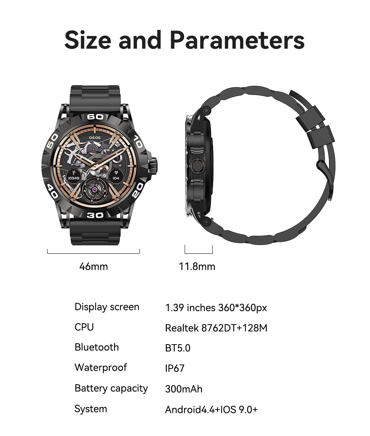 - Non-SIM Communication: Designed for smart connectivity without the need for an additional SIM card, utilizing Bluetooth for calls and notifications.
